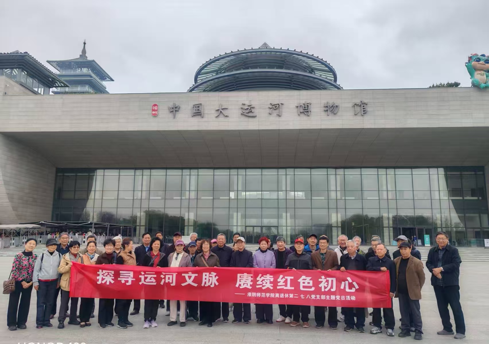 为深入学习贯彻习近平新时代中国特色社会主义思想,牢固树立和践行正确政绩观,引导广大离退休党员离岗不离党、退休不褪色,奋力投身“十五五”发展新征程,2026年4月16日,淮阴师范学院离退休第二、七、八党支部联合赴扬州中国大运河博物馆,开展“探寻运河文脉 赓续红色初心”主题党日活动。活动由离退休第二党支部书记郭启松主持。